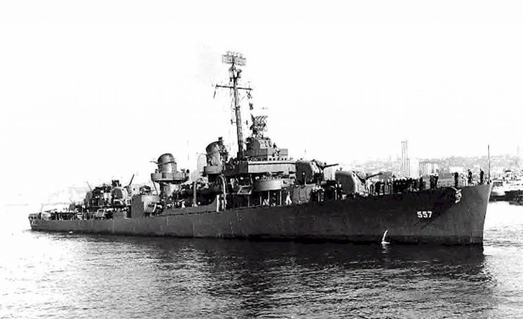Commander Ernst E Evans, the Cherokee-American captain of the USS Johnston and veteran of the defeats of the Bismarck Sea and the naval battles in Solomon’s, knew exactly what was happening as soon as heard the first telltale train engine sound of the large battleship caliber shells streaking overhead. Evans, with the closest destroyer to the Japanese, without orders turned the Johnston around, moved to flank speed, attacked, and made smoke to obscure his charges. The problem with making smoke on a destroyer is that it billows behind the ship: it doesn’t obscure the destroyer making the smoke, it highlights it. This is what the flyers saw as Evans desperately tried to close the distance to engage.