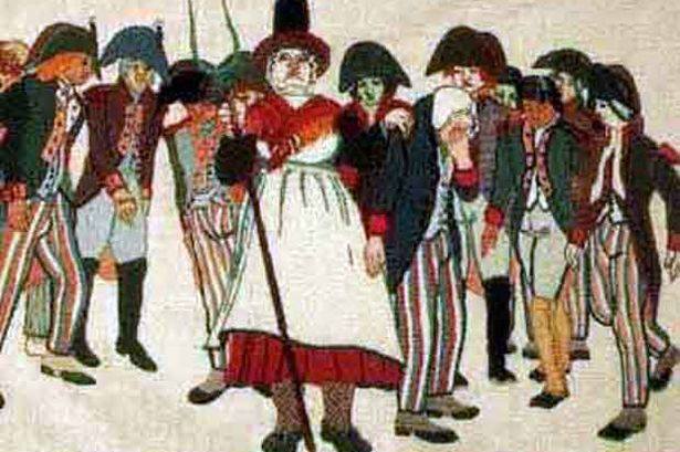 Once the stories spread, the population literally turned out with their farming implements to repel the French. On the morning of 23 February, the formidable cobbler Jemima Nicholas, attacked one of the drunken parties, gave them a good “what for”, captured 19, and locked them in St. Mary’s Church. Hundreds more rallied and marched on the French with pitchforks and torches. Like Mrs. Nicholas, the women wore the traditional Welsh red skirts and tall black felt hats, and to the drunk Frenchmen, they were mistakenly reported as elite “Grenadier Guards” to Tate. However, pitchforks, sickles, garden hoe’s, and those funny little hedge clippers, a contemporary army does not make. The furious Welsh farmers and townsfolk were reinforced by their husbands, sons, brothers, and cousins in the unofficial and semiofficial militia of the area.