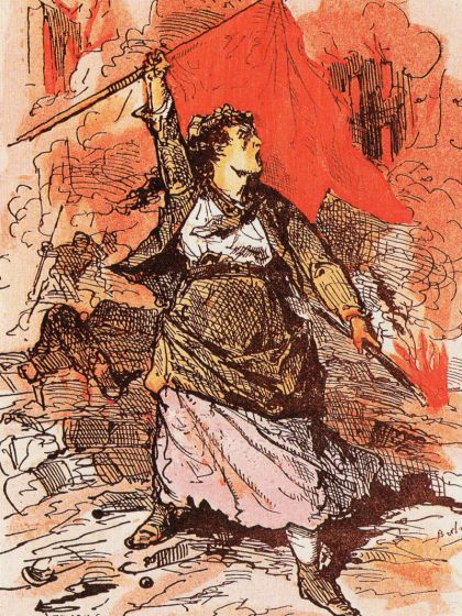 The “Communards”, as they were known, were very progressive minded and even managed to put some reforms into place, such as women’s suffrage, the separation of the church and state, pensions for widows of National Guardsmen, and some worker’s rights, particularly the abolition of shift work and worker’s fines. But by the same token, many radical ideas were forced upon the Parisians at the barrel of a gun, such as banishment of rent, debt, and interest, and workers forcibly taking over their employer’s enterprises. The Commune ruled by decree and acted as the three branches of govt: executive, legislative and judicial, backed by the guns of the National Guard. The French Tricolor was immediately abandoned for the Socialist Red.