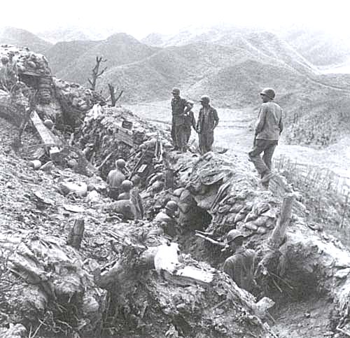 By 1953, the Korean War’s front lines had stagnated roughly half way down the Korean peninsula just north of Seoul. 800,000 dug in Chinese and North Korean troops looked across miles of heavily fortified hills at 650,000 dug in American, South Korean and United Nations’ troops to the south. At this point, the Korean War had more in common with World War I than the recent fight with Germany and Japan, and neither side could launch a major offensive without unacceptable losses. Constant patrolling and artillery duels were the norm, with the occasional attack on isolated outposts to draw media attention. These small scale battles over hilltops reminded the people at home that the war in Korea was still being waged. These company and battalion-sized actions had dramatically out sized propaganda significance compared to any meager military value the hills conferred from changing hands.